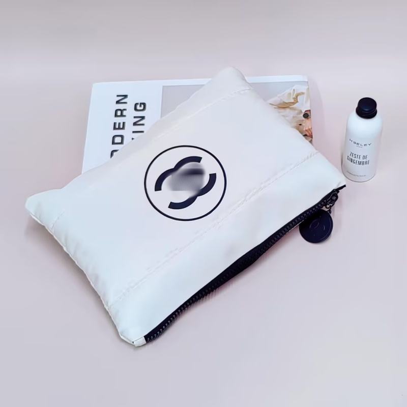 Custom Logo Large Capacity Quilted Cotton Makeup Pouch Fashionable Puffer Cosmetic Bag with Open/Zipper Closure Travel Storage