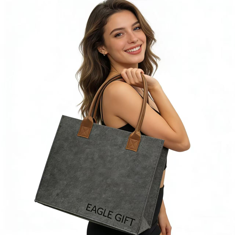 Custom Logo Large Capacity Reusable Felt Tote Bag Lightweight Portable Daily Commute Shopping Felt Bag