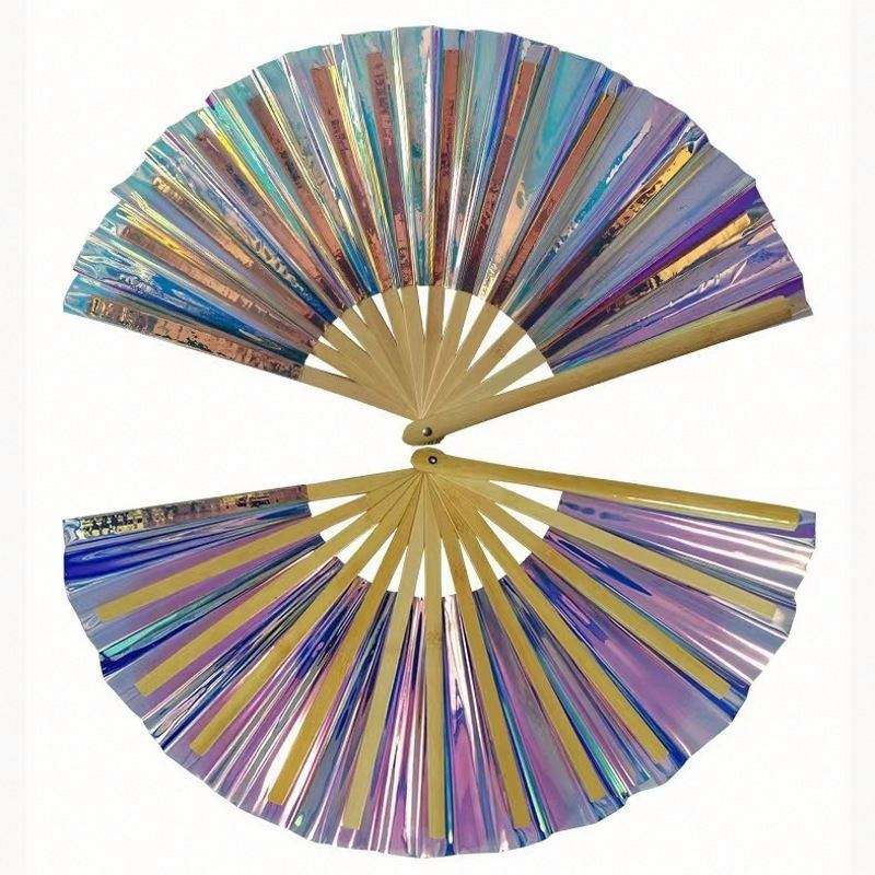 Custom Logo Large PVC Handheld Fan Bamboo Crafts for Wedding Parties