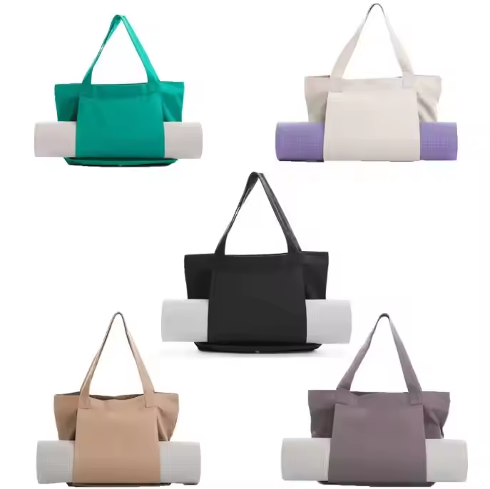 Custom Logo Large Yoga Accessories Gym Cotton Beach Shoulder Canvas Yoga Tote Bag with Yoga Mat Carrier