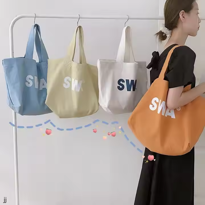 Custom Logo Letter Pattern Fashion Women Student Large Canvas Cotton Gift Grocery Shopping Tote Bag