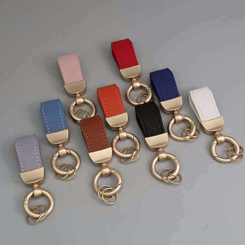 Custom Logo Light Keychain Metal Car Key Tag with PU Leather Chain & Keyring Engrave LOGO Keychains
