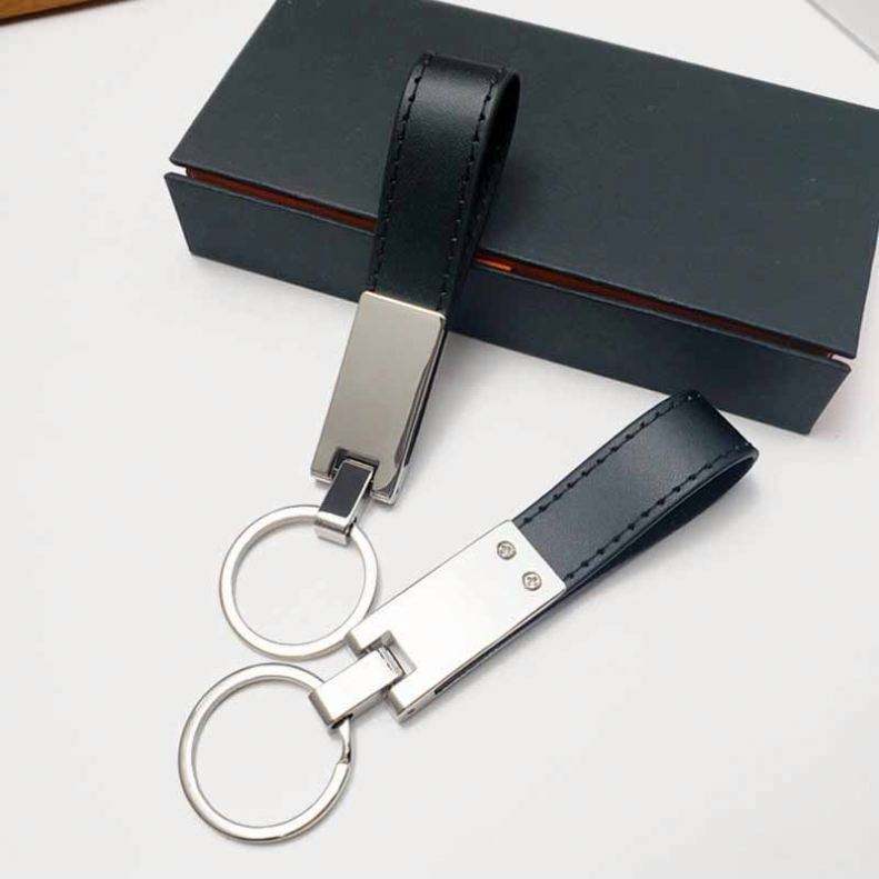 Custom Logo Light Keychain PU Leather and Black Metal Engraved Car Key Ring Stainless Steel and Zinc Alloy Gift