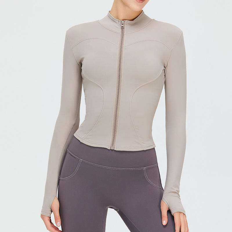 Custom Logo Lightweight Breathable Plus Size Athletic Fitness Yoga Top Long Sleeve Zipped Jacket Women Four-Way Stretch Sports