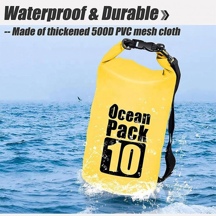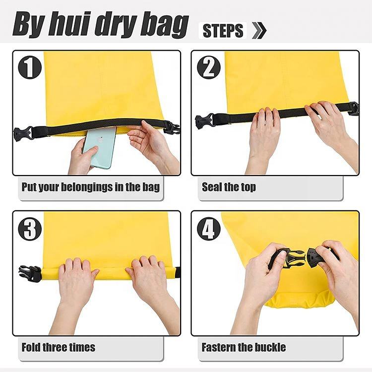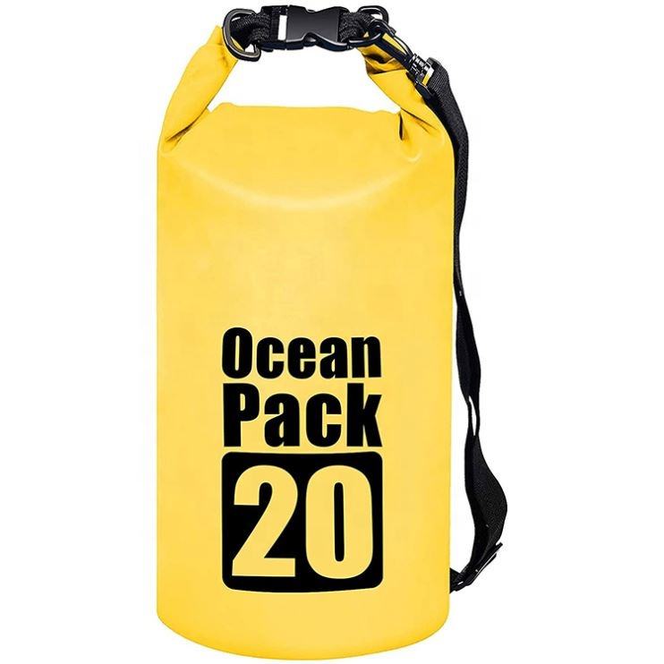 Custom Logo Lightweight Portable 20L Dry Bag Adjustable Strap Waterproof 500D PVC Outdoor Camping Ocean Beach