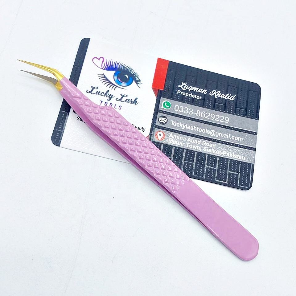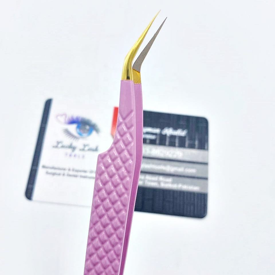 Custom Logo Lilac Fiber Tip Tweezers New Volume Pointed Stainless Steel Beauty Tool Hand Tested for Eyelash Extensions