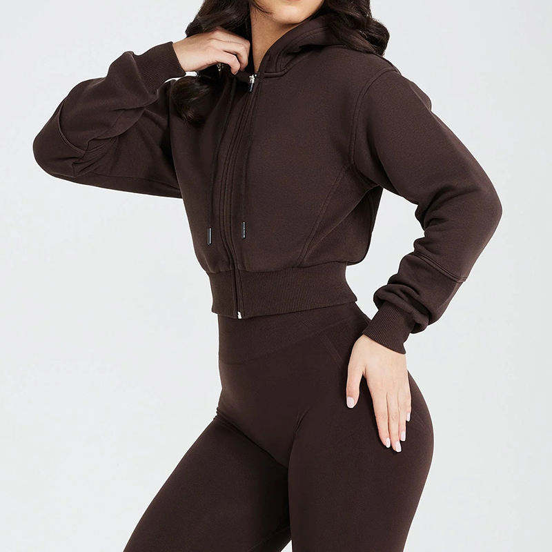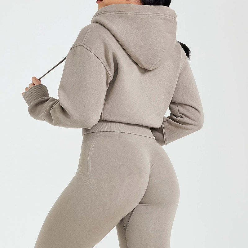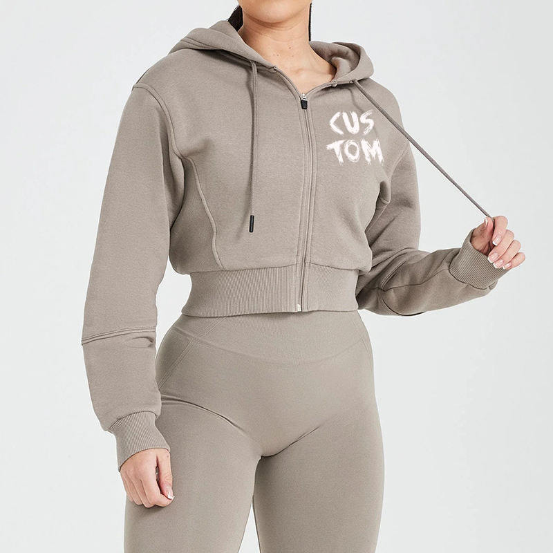 Custom Logo Long Sleeve Crop Top Hoodie Women Embroidery Blank Fleece Wholesale Thick Casual Cotton Cropped Zip up Hoodie Women