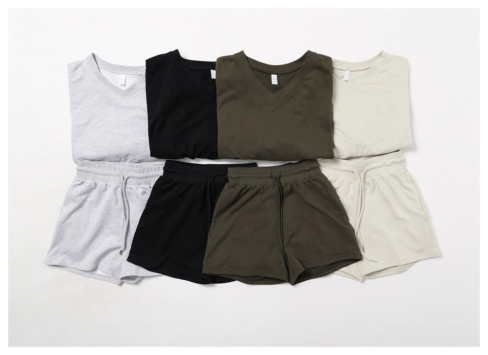 Two Piece Sportswear Cotton Short Pant Tracksuits Women Sweatsuit Set