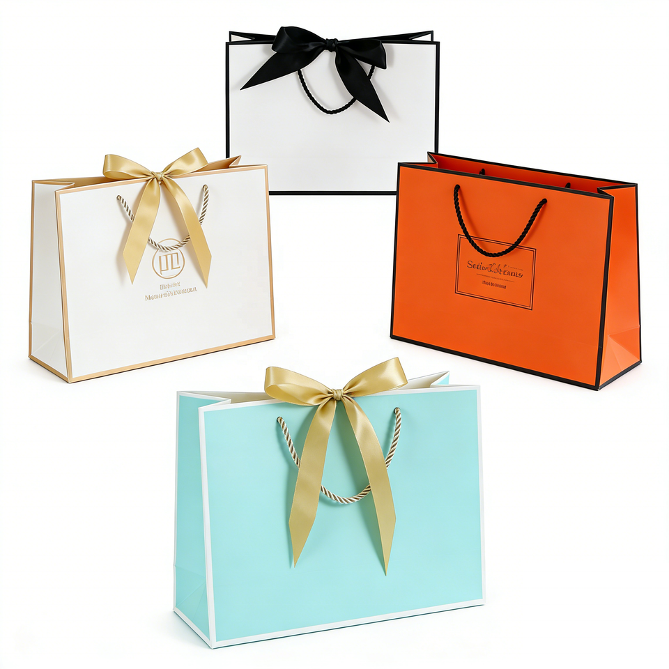 Custom Logo Luxury Black Kraft Paper Gift Bags Die Cut Handle For Perfume Cosmetic Mascara Packaging