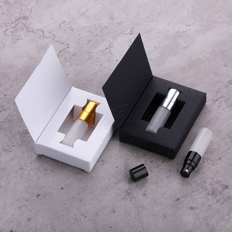 Custom Logo Luxury Gift Empty 3ml Frosted Spray Glass Perfume Oil Boxes Tester Bottle with Pump Sayer and Paper Box
