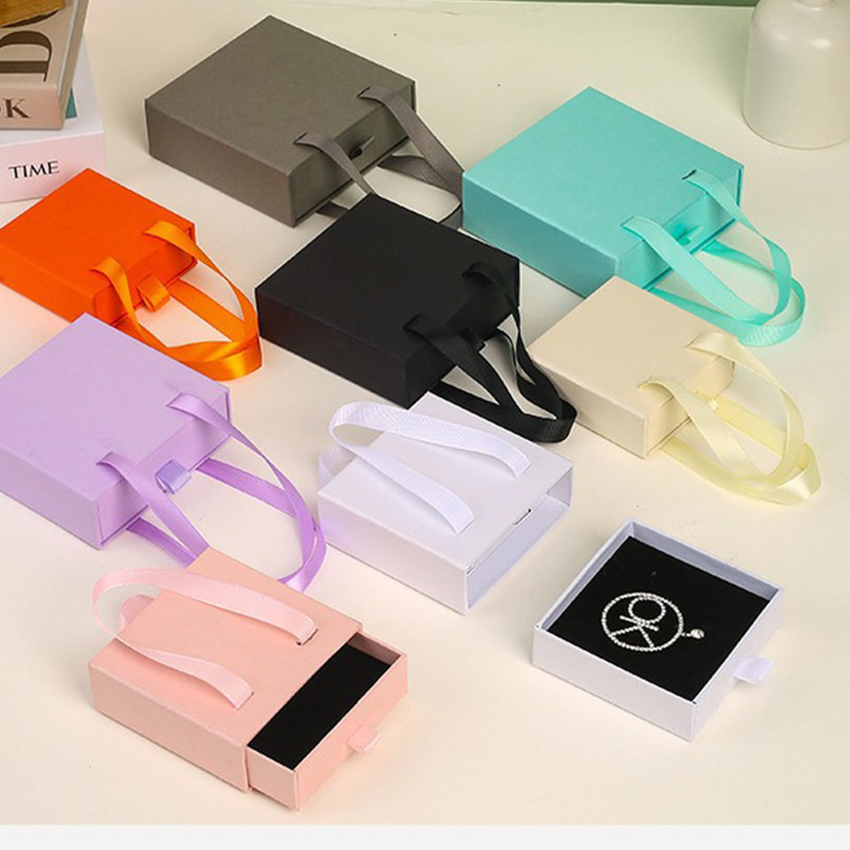 Custom Logo Luxury Jewelry Storage Paper Drawer Portable Rectangle Handbag Pouch Square Pattern Fashionable Luxury Jewelry Boxes
