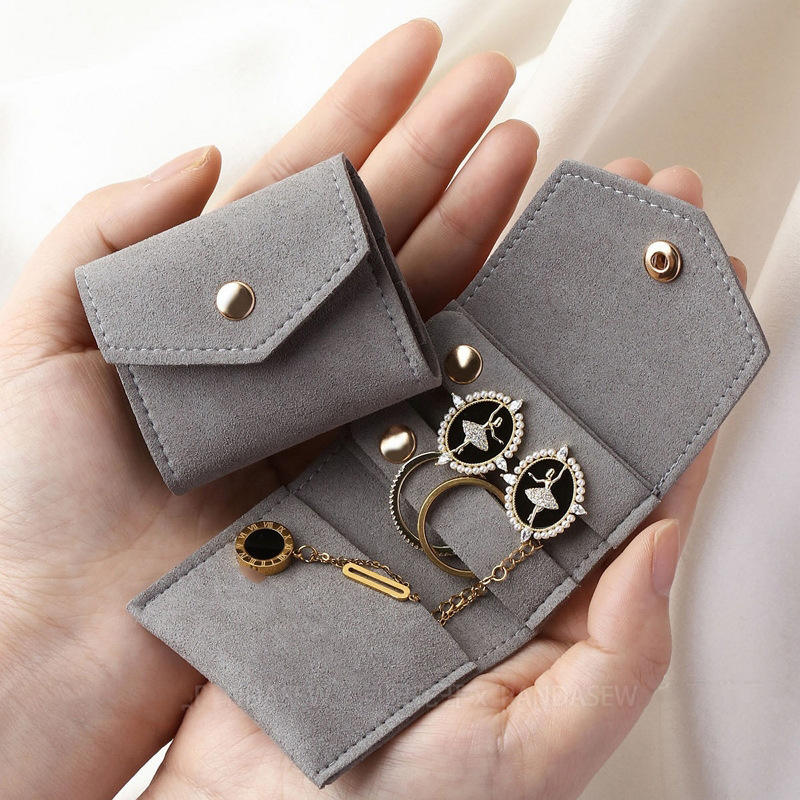 Custom Logo Luxury Mini Jewelry Storage Bag Portable Travel Earrings Bracelet Pouch Women Colorful Microfiber Button Closure