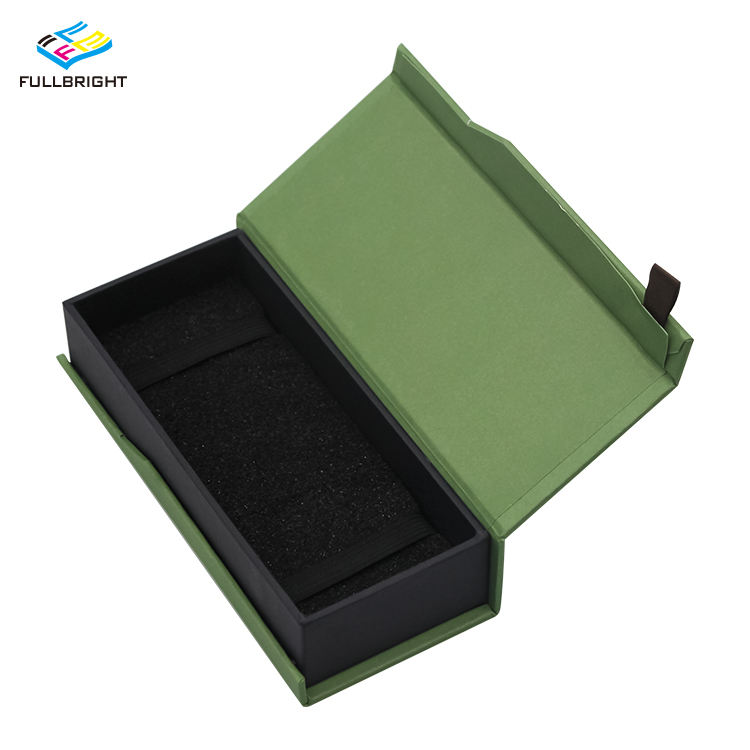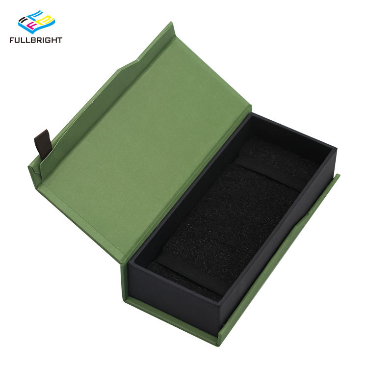 Custom Logo Luxury Rigid Cardboard Blackish Green Paper Packaging Box Book Shape Business Pen Gift Box with Flip