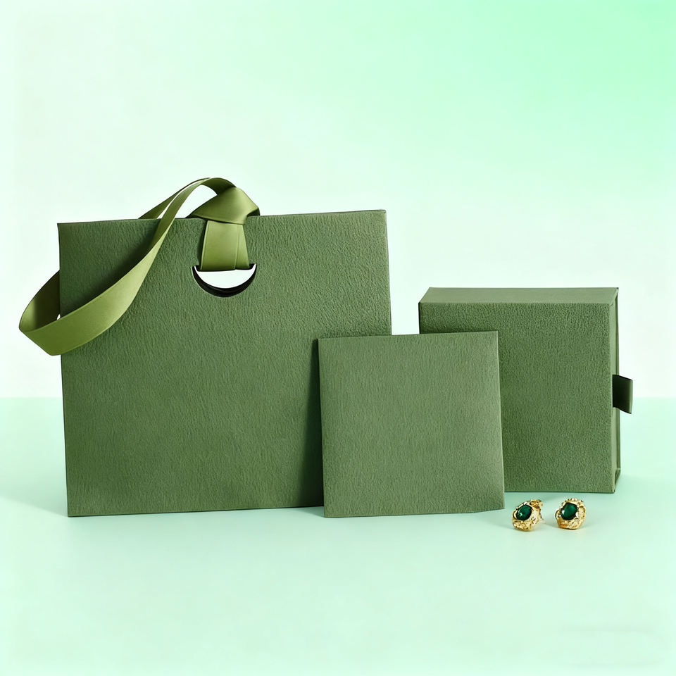 Custom Logo Luxury Three-in-one Square Storage Box Custom Design Necklace Ring Earring Jewelry Cardboard Ribbon Tote Bag Slide