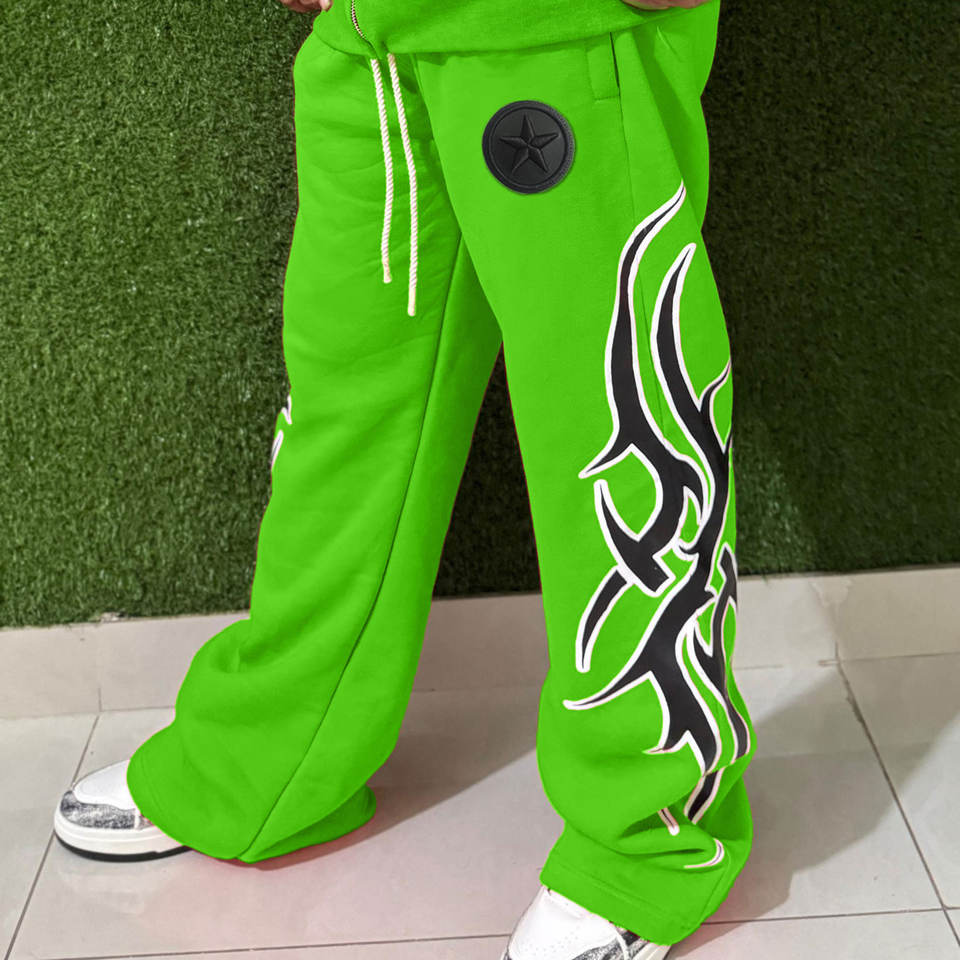 Luxury Men's Tracksuits Set Thick Cotton Fleece Hoodie Straight Wide Leg Sweatpants Custom Logo 220g HIGH STREET Plus Spring
