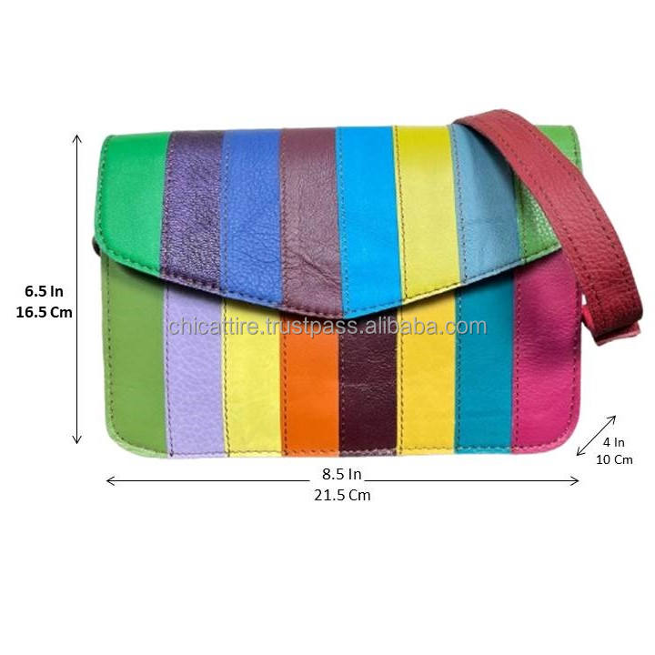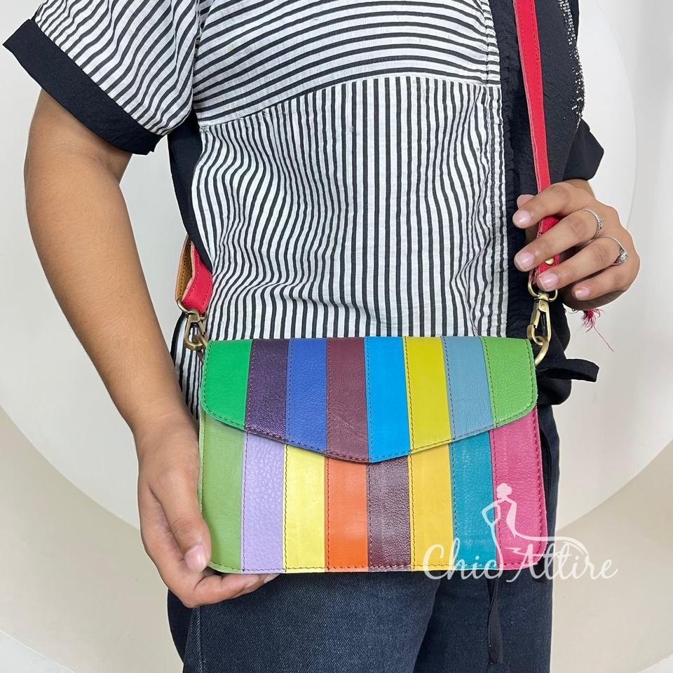 Real Handmade Recycle Leather Stubby Color Sling Bag