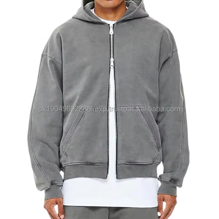 Custom Logo Men 100 Cotton Hoodie French Terry High Quality Blank Oversized Vintage Acid Wash Zip up Cropped Hoodie Men