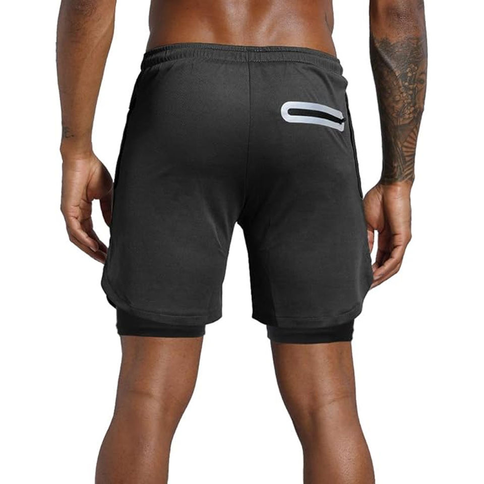 Custom Logo Men 2 In 1 Running Shorts Compression Liner Gym Fitness Shorts Quick Dry Sports Shorts Wholesale