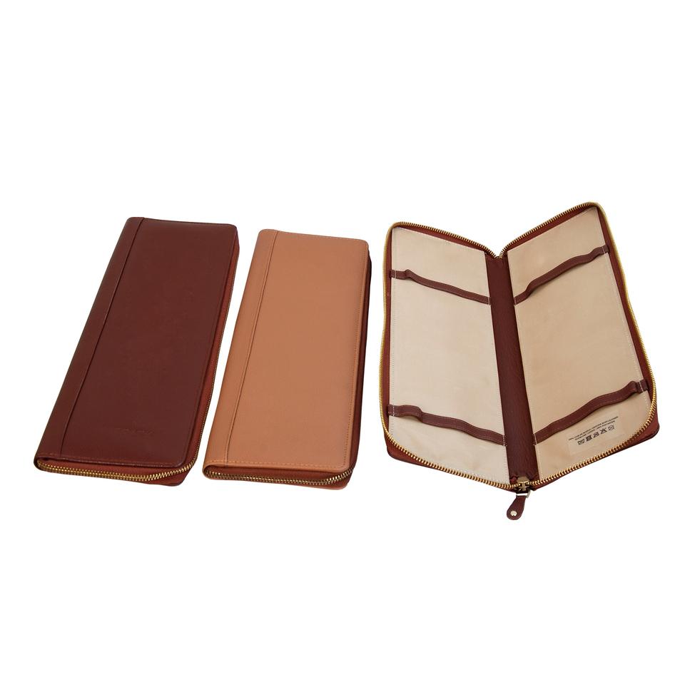 Custom Logo Men Business Real Leather Travel Tie Case Brown Color Zip Closure Tie Case