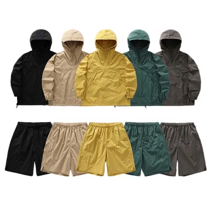 Custom Logo Men City Streetwear Lightweight Blank Tracksuit Men 2 Pieces Set Gym Sweatsuits Nylon Windbreaker Shorts Sets