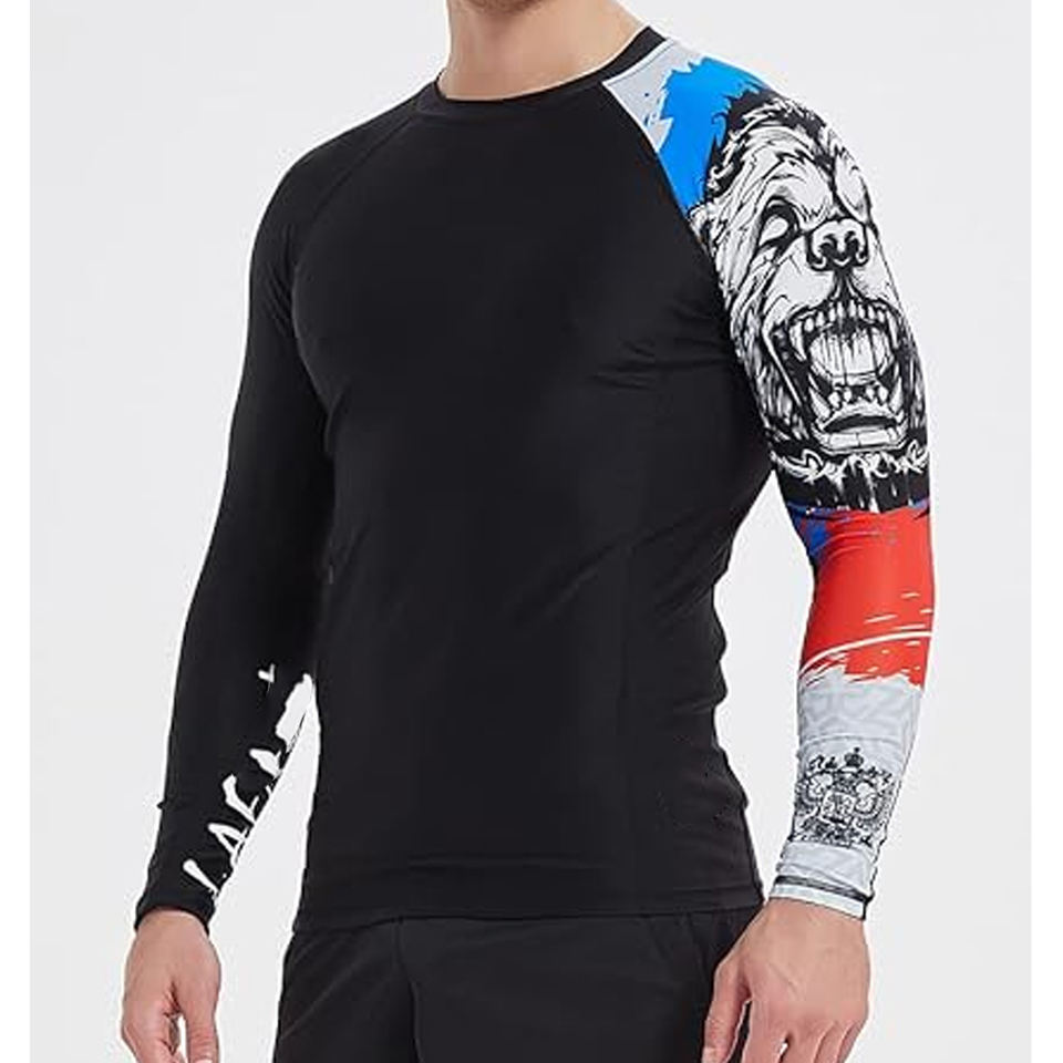 Custom Logo Men Long Sleeve Rash Guard Compression Shirt Graphic Print UV Protection OEM Manufacturer Bulk