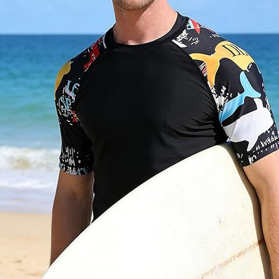 Custom Logo Men Rash Guard Compression T Shirt Short Sleeve Swim Shirt UV Protection OEM Manufacturer Bulk