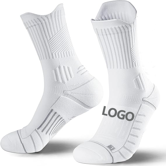 Custom Logo Men Sports Socks White Cotton Running Grip Crew Ankle Soccer Socks