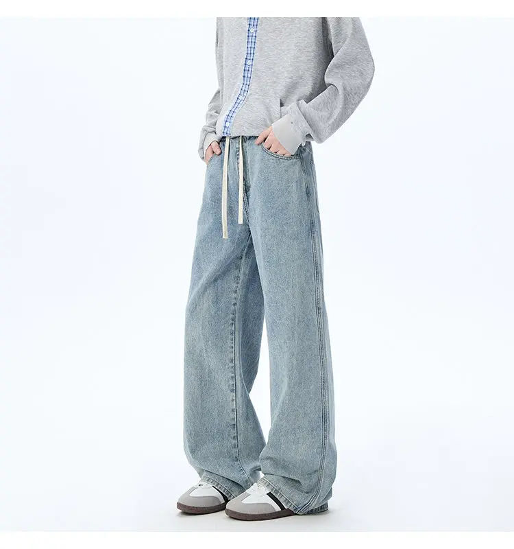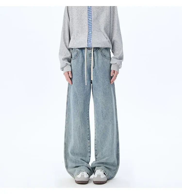 Custom Logo Men Straight Jeans Retro High Street Style Casual Regular Fit Loose Waist Logo Factory Price Denim Pants