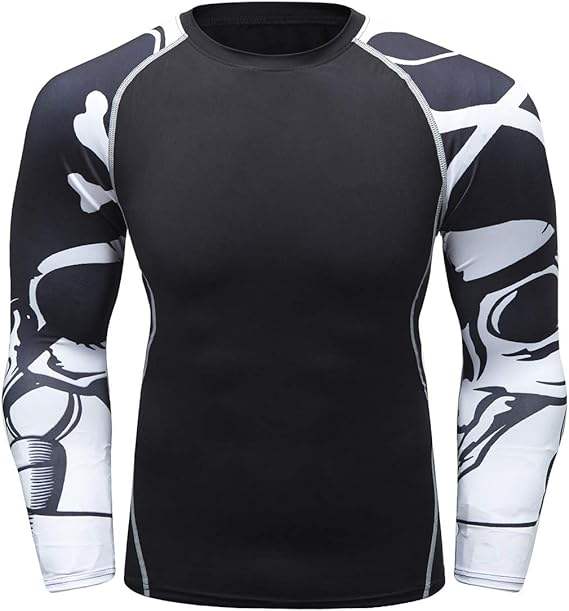 Custom Logo Men's Black Rash Guard with White Graphic Sleeves Performance Compression Shirt for Mma Gym Training