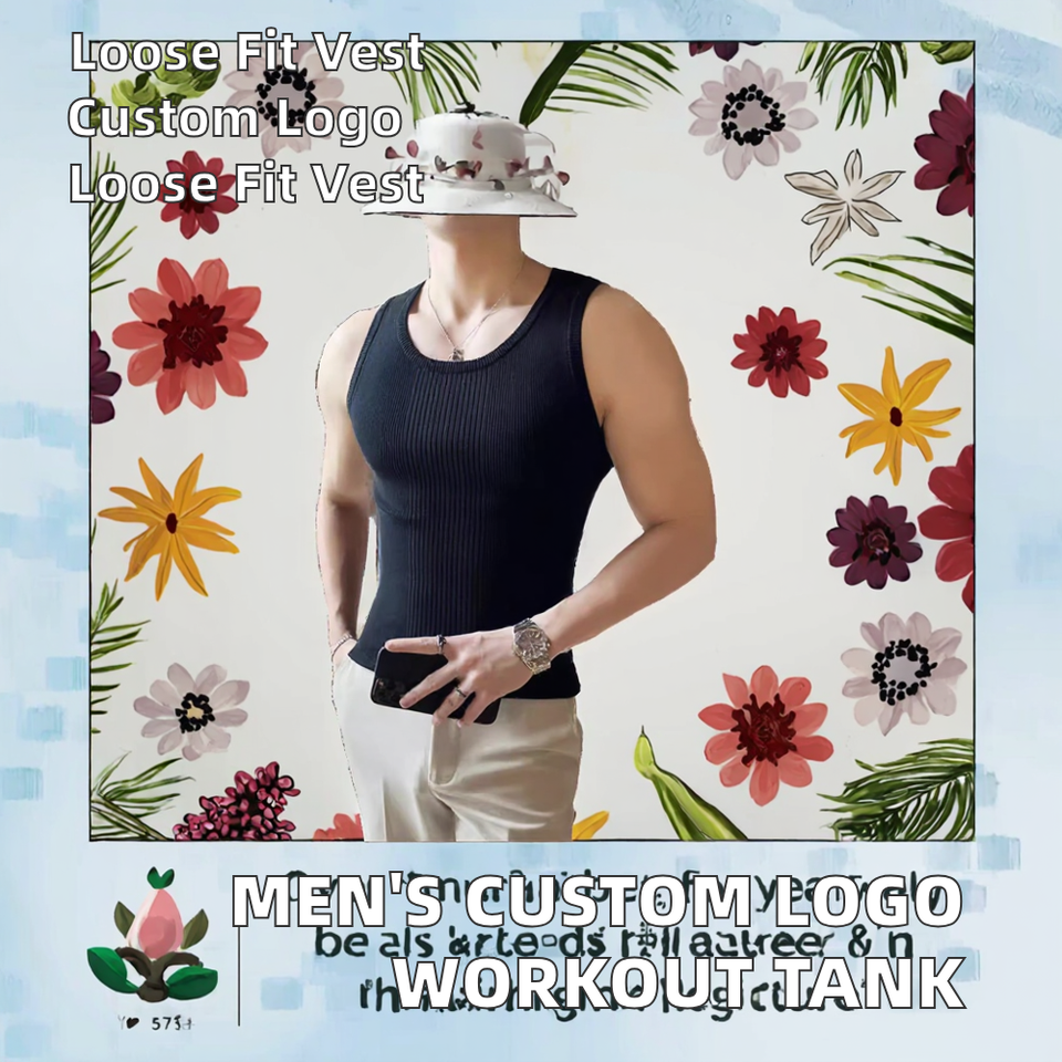 Custom Logo Men's Casual Fit Workout Tank Tops Solid Color Long Sleeveless Fitness Vest Loose Bodybuilding Top