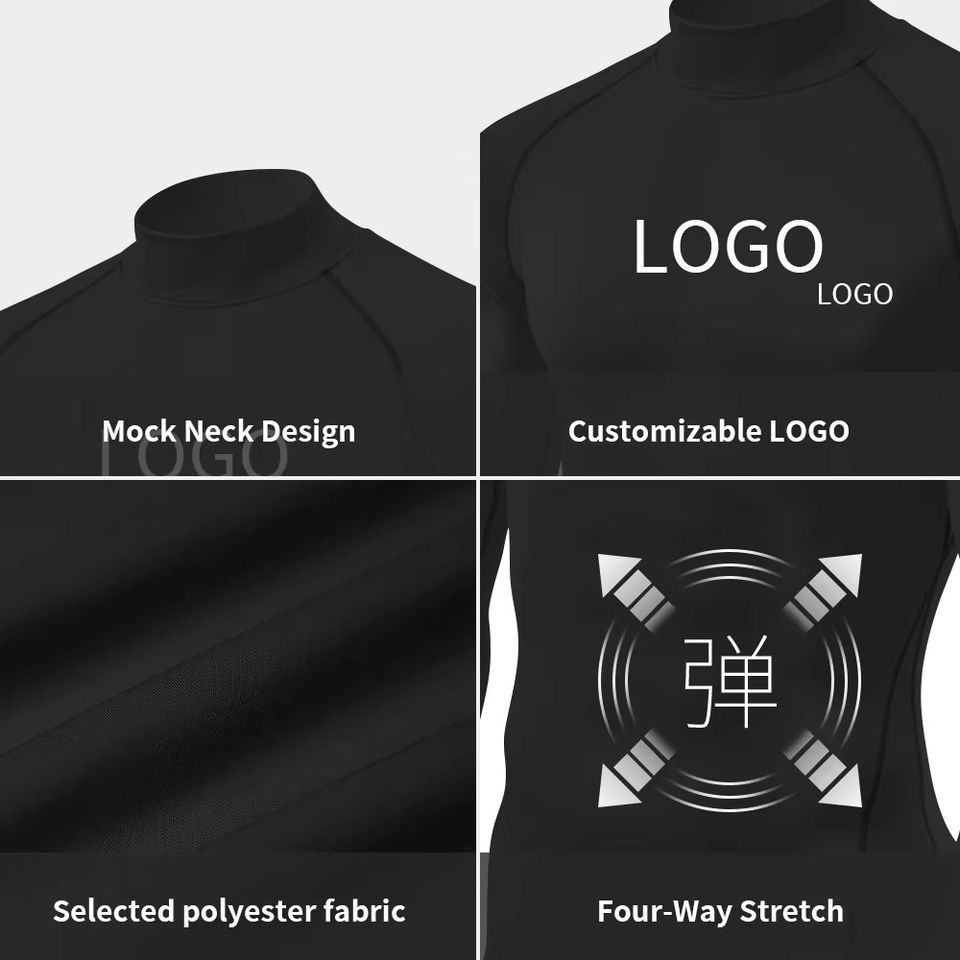 Custom Logo Unisex Mock Compression Long Sleeve Quick Dry Breathable UV Protection Rash Guard Surf Swim Tops Gym Tight