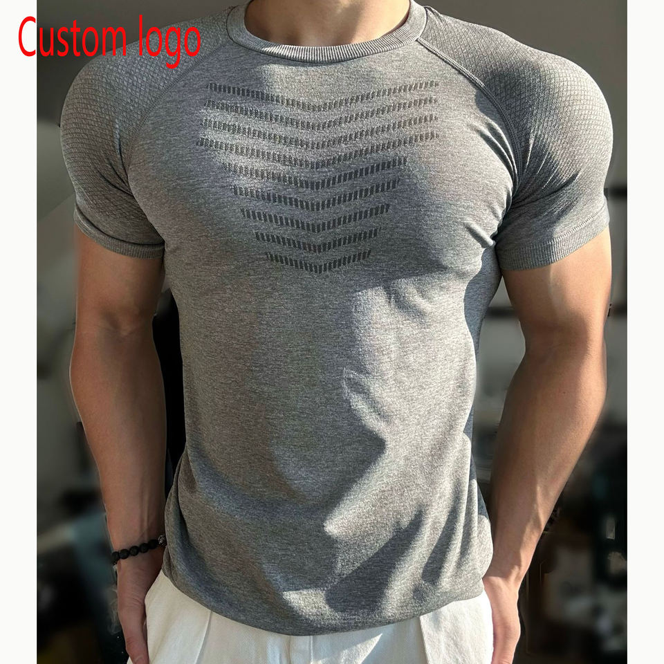 Custom Logo Men's Seamless Shark-Pattern Jacquard T-Shirt - Stretch Slim-Fit Quick-Dry Workout Top for Gym Training
