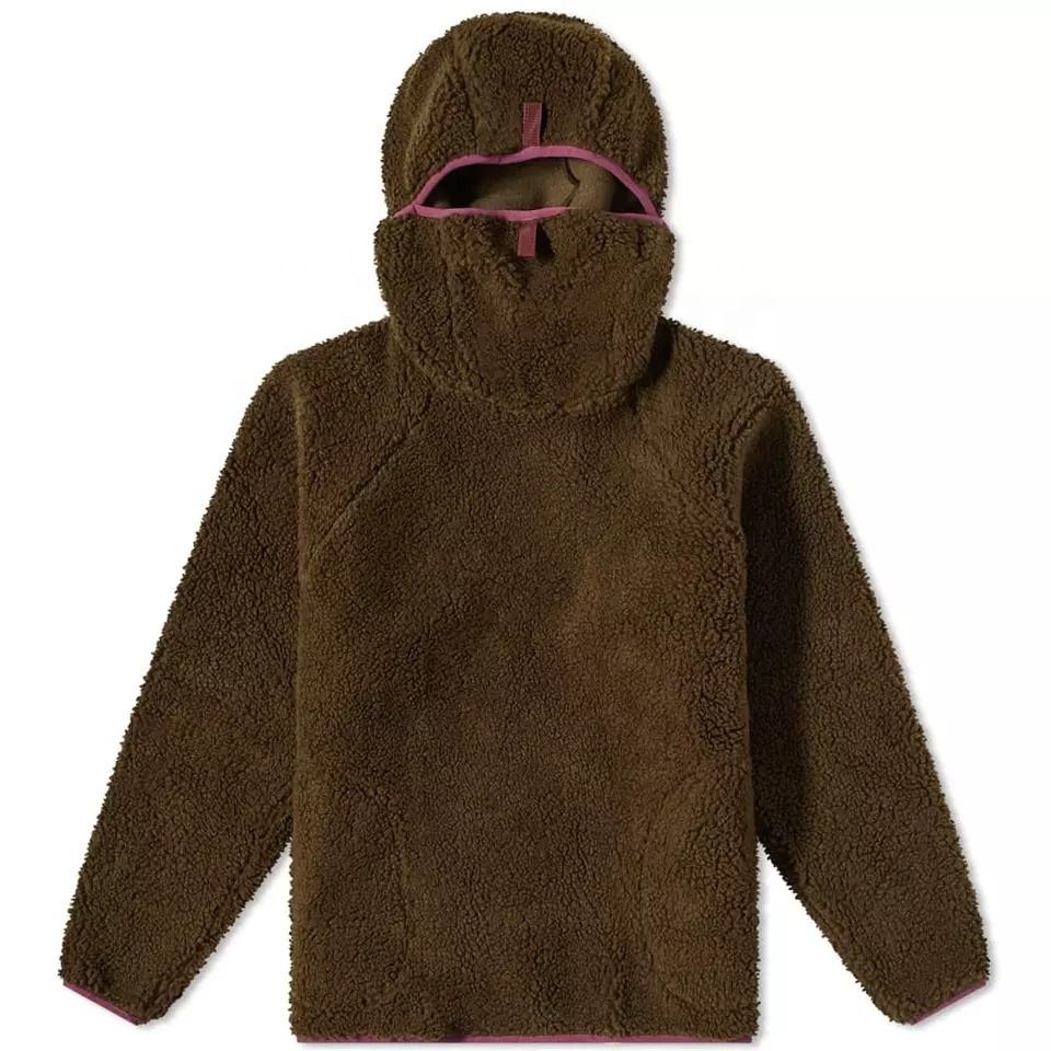 Custom Logo Men's Sherpa Hoodie Causal Warm Winter Cozy Plain Loose Fleece Pullover with Hooded Collar