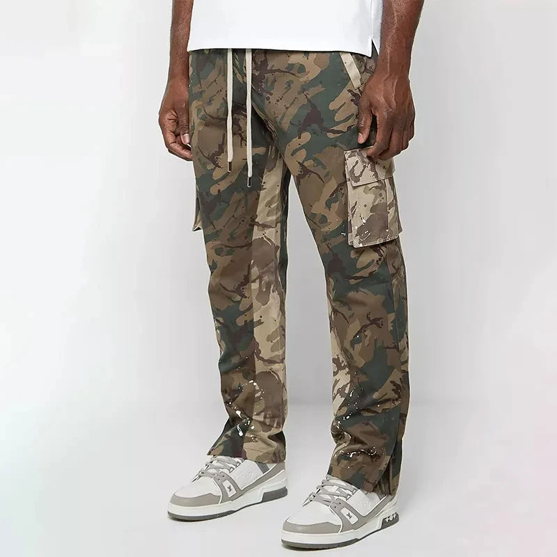Custom Logo Men's Stacked Joggers With Pocket Street Wear Men's Sweatpants Cargo Pants Flare Trousers Custom Design Track Pants