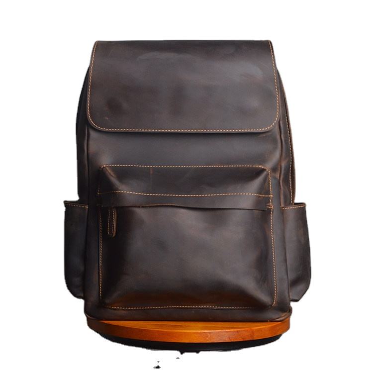 Custom Logo Men's Stylish Genuine Leather Laptop Backpack Du rable Travel Bag Zipper