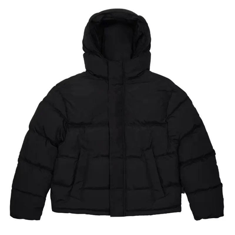 Custom Logo Men's Winter Thick Waterproof Warm Puffer Jacket Oversized Quilted Stand Collar Zipper Closure Bubble Hood Pattern