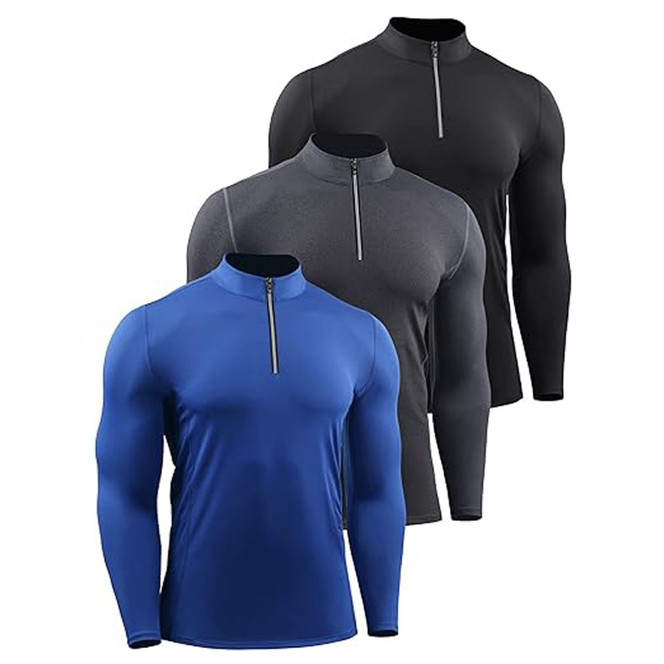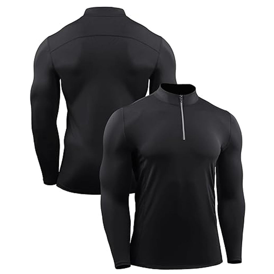 Custom Logo Men's Zip Neck Compression T-Shirt 100% Polyester Muscle Fit Compression Jersey Men's Running Clothes Jogging Wear
