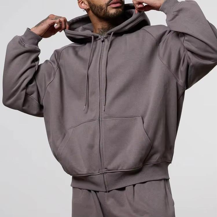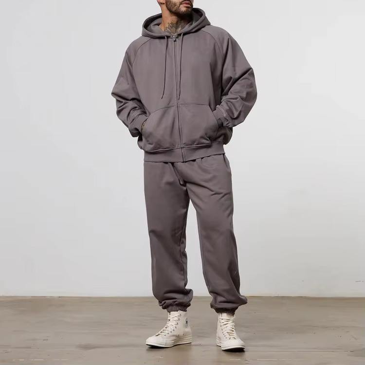 Custom Logo Mens 2-Piece Hooded Sweatpants Oversized Zip Hoodie Set Blank Plain Cotton Polyester Fleece Heavy Comfortable