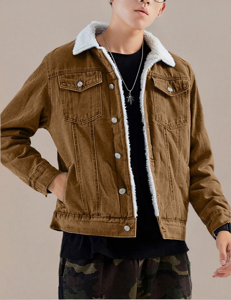 Custom Logo Mens Sherpa Denim Jacket Winter Warm Fleece Lined Jean Jacket Casual Streetwear OEM Manufacturer with custom