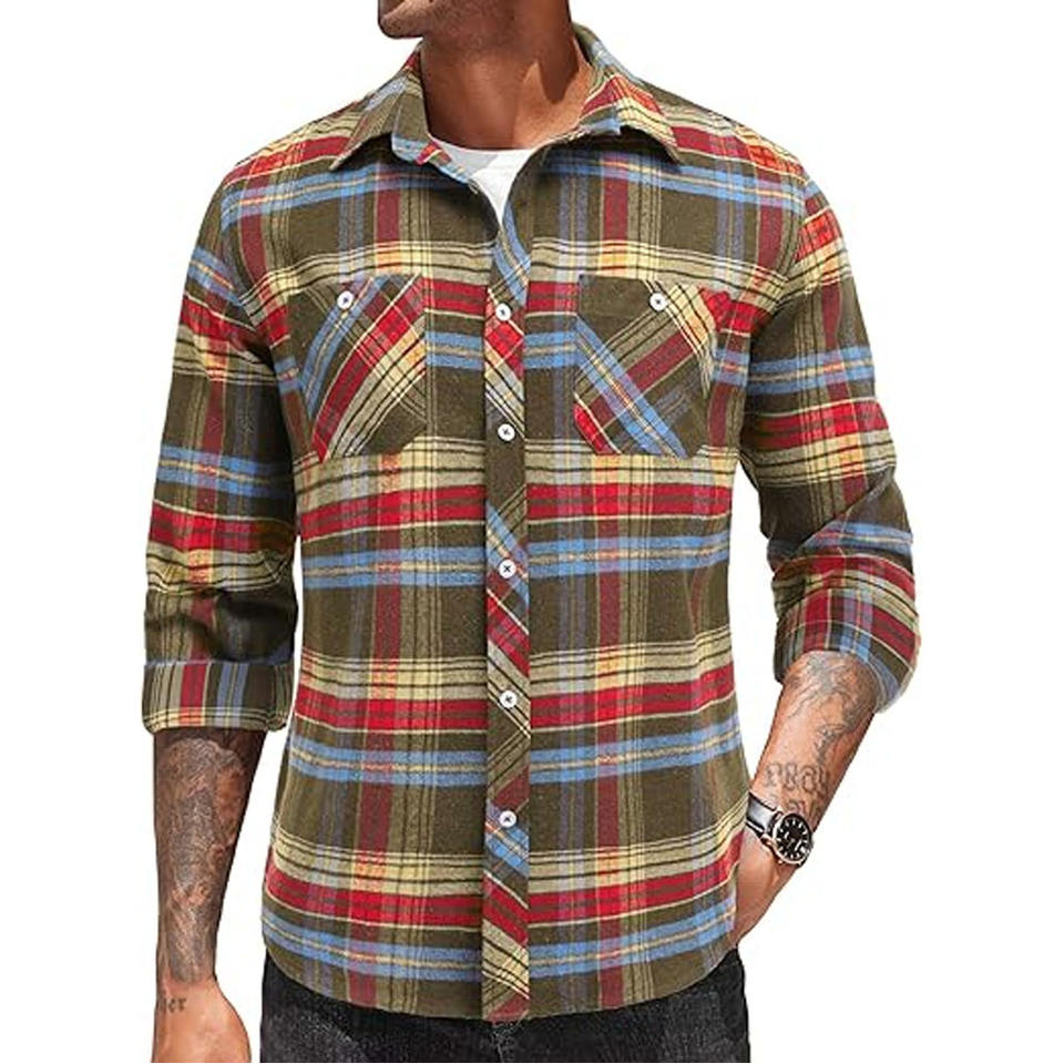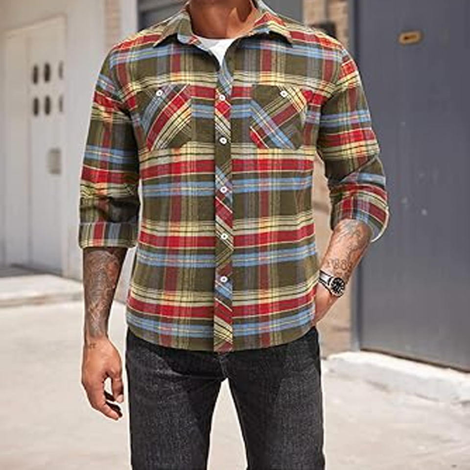 Custom Logo Mens Shirts Stretch Fashion Casual Shirts Autumn Slim Fit Checked Shirts for Men