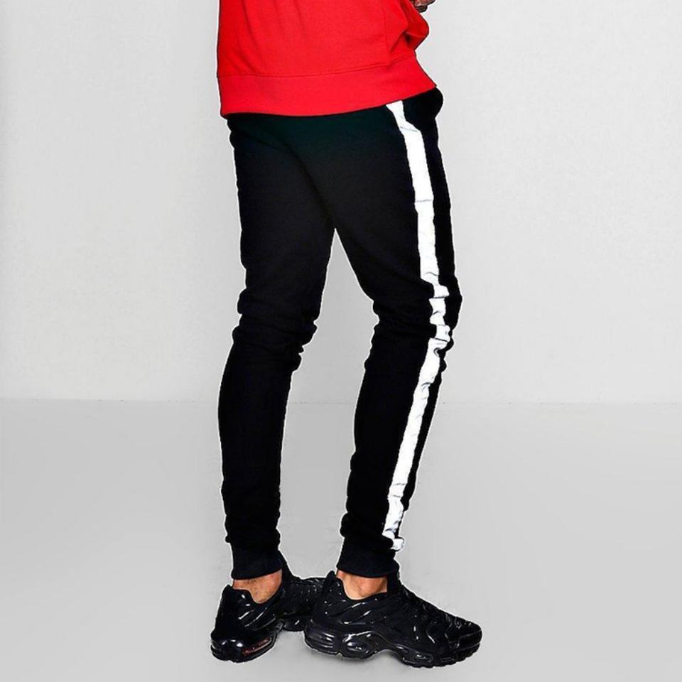Custom Logo Mens Track Pants Side Stripe 3m Reflective Tape Skinny Fit Sport Joggers Pants