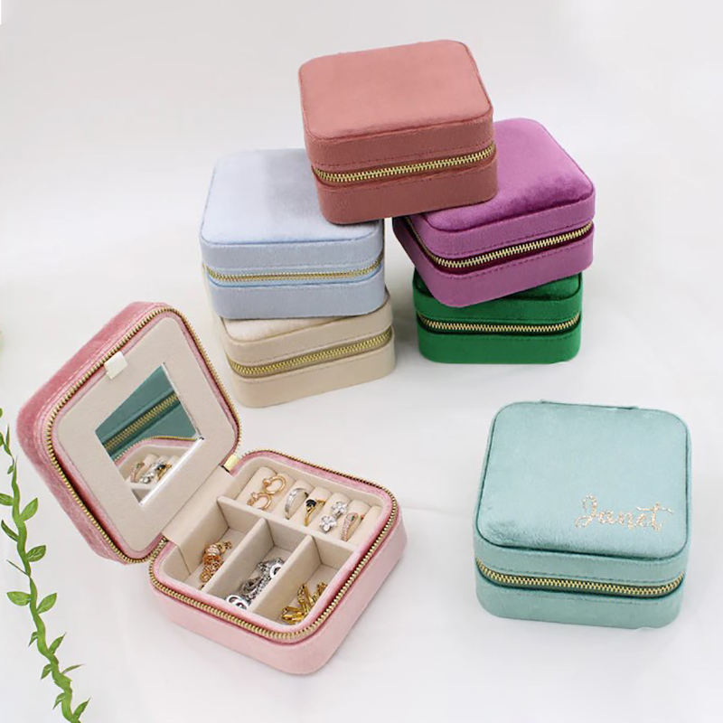 Custom Logo Mini Velvet Jewelry Box Luxury Simple Design for Small Ring Earrings Packaging Organizer