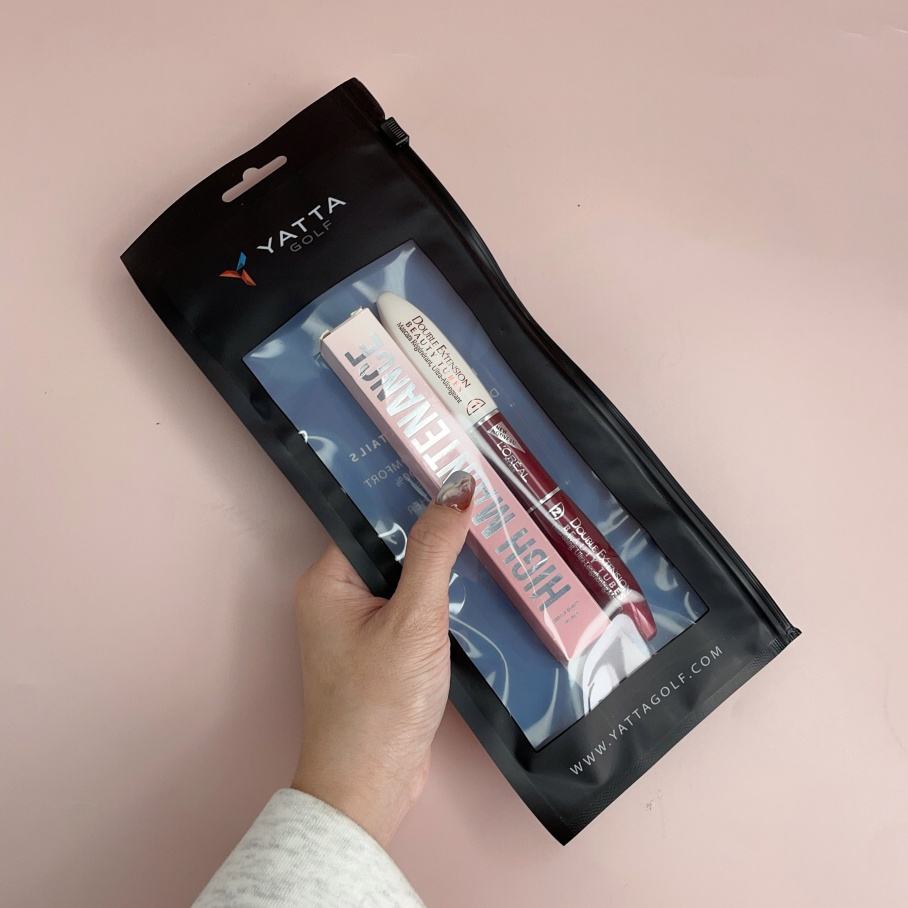 Custom Logo Mylar Ziplock Bag Cosmetics One Side Clear Window Zipper Bag for Makeup Brush Socks Packaging with hang hole