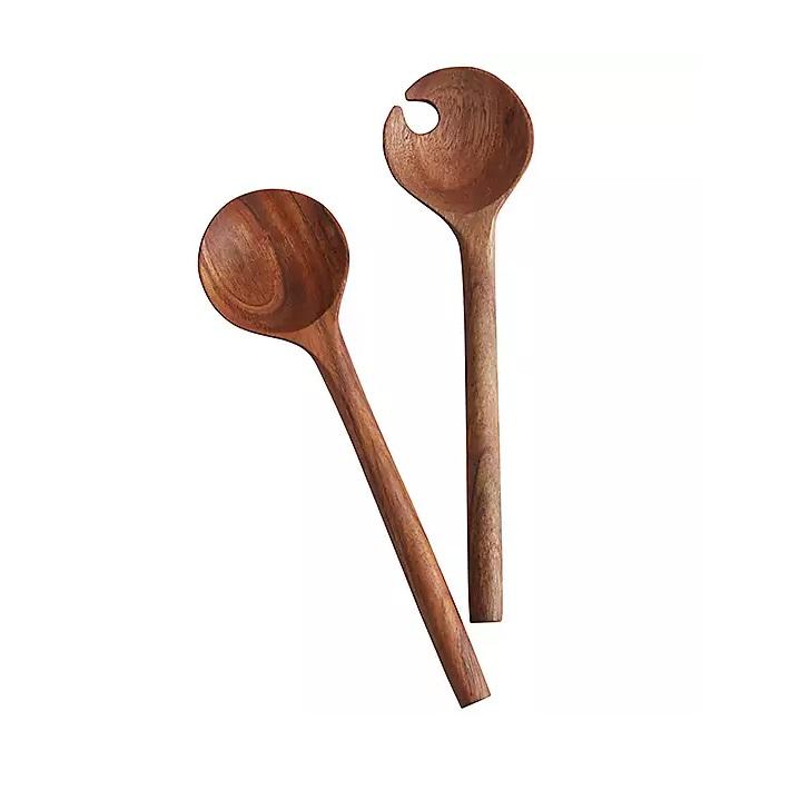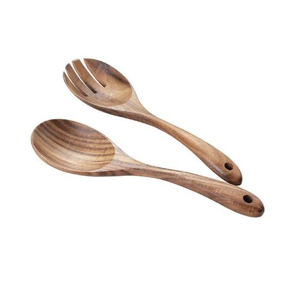Custom Logo Natural Wood Salad Server Sets Serving Tools Kitchen Utensils Wooden Salad Tool Spoon Fork Set Wooden Cutlery