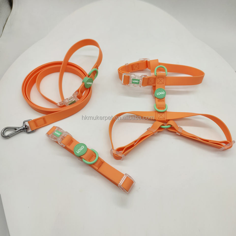 Product name:Custom Logo PVC waterproof Webbing Dog Collar Leash and Harness Set