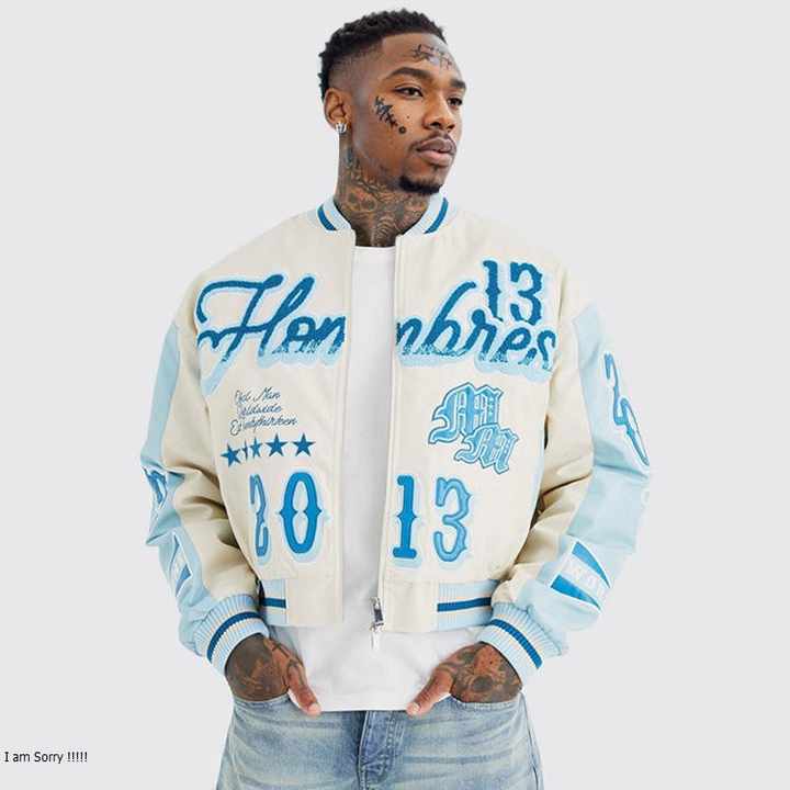 Custom Logo New Design Men Jackets Streetwear Baseball Collar Varsity College Jacket Genuine Leather Chenille Letterman Winter