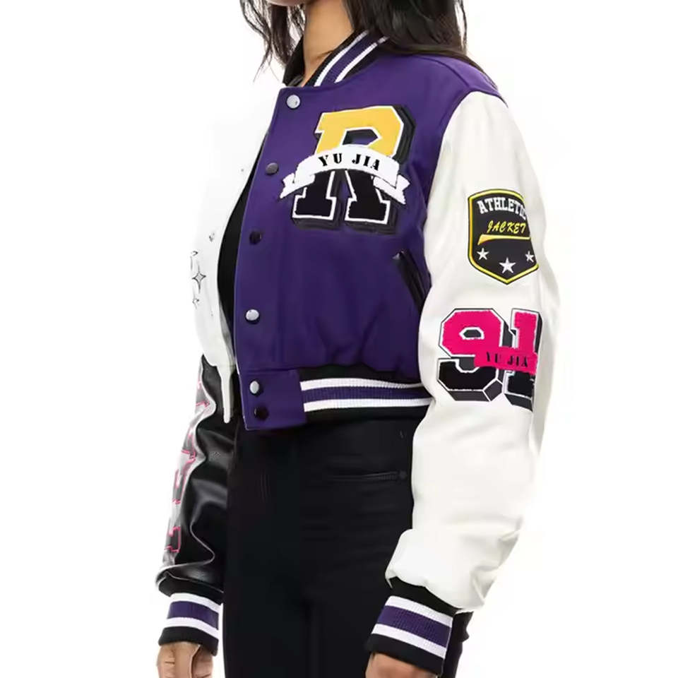 Custom Logo New Women Hip Hop Varsity Jacket Custom Embroidery Wool Body Leather Sleeves Y2K Baseball Varsity Jackets for Women