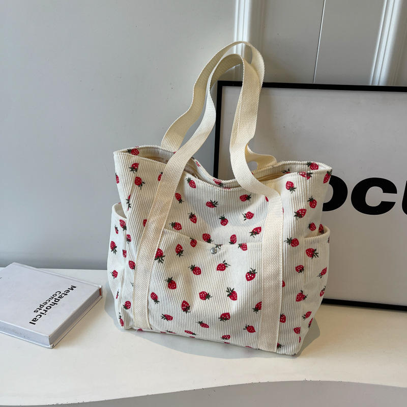 Custom Logo New Womens Corduroy Tote Bag Large Capacity Ladies Shopping Beach Shoulder Cute Tote Bags