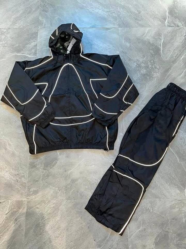 Custom Logo Nylon Fabric Baggy Zipper Hoodie Waterproof Reflective Wind Breaker Jogger Track Suit Windbreaker Tracksuit for Men