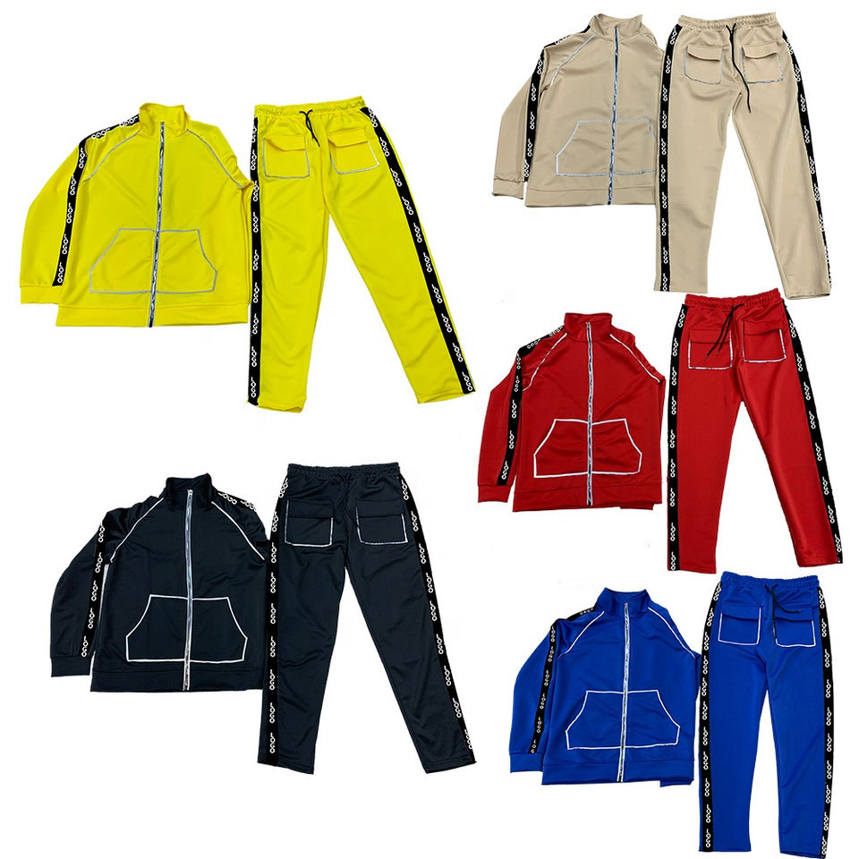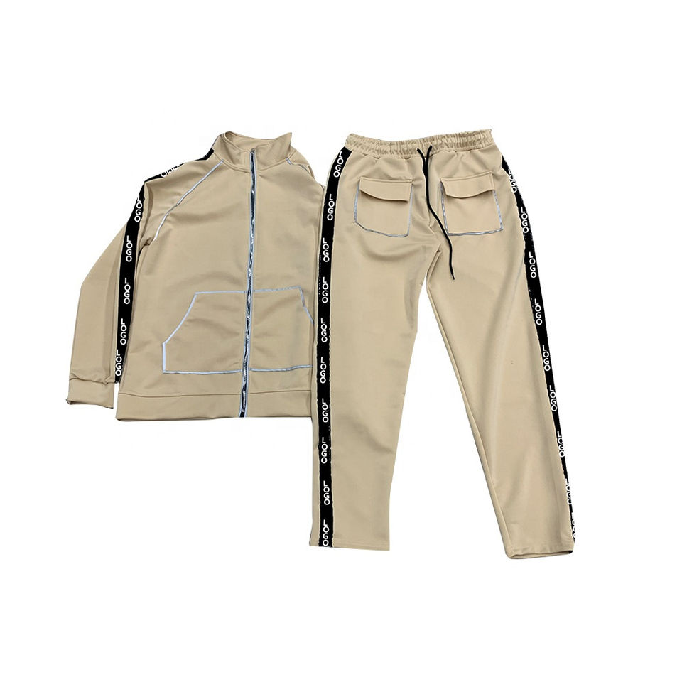 Custom Logo Nylon Jacket Reflective Tracksuit Side Stripe Sweatsuit Joggers 2 Piece Sets Zipper Up Jogging Suits For Men Women